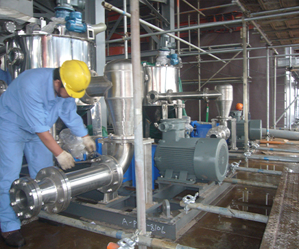 乳化炸药专用乳化机用于预乳工序称之为预乳机,用于精乳工序的称之为精乳机,现已有20多家企业用于乳化炸药生产线,生产的炸药指标均达到GB18096-2000标准。